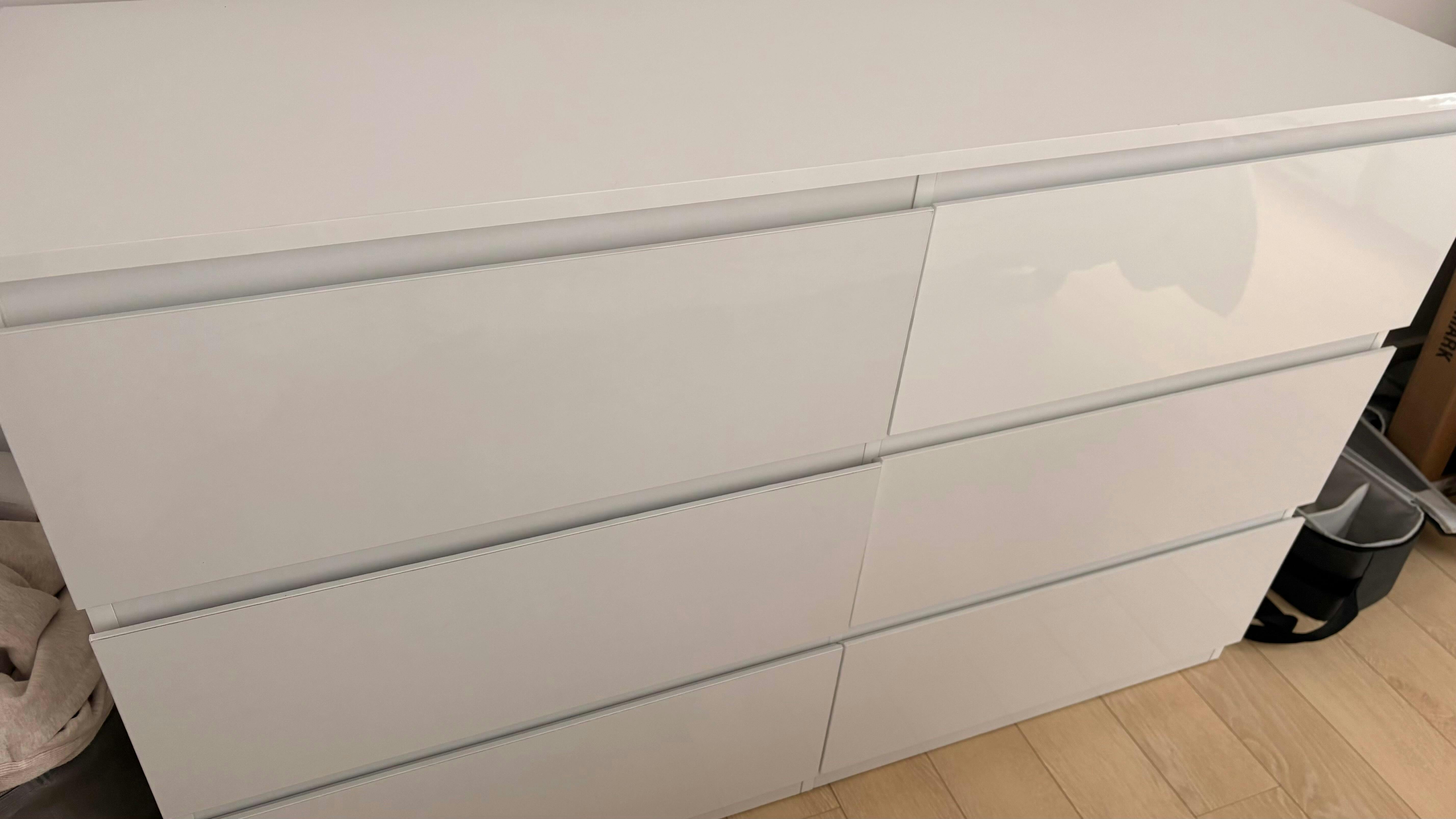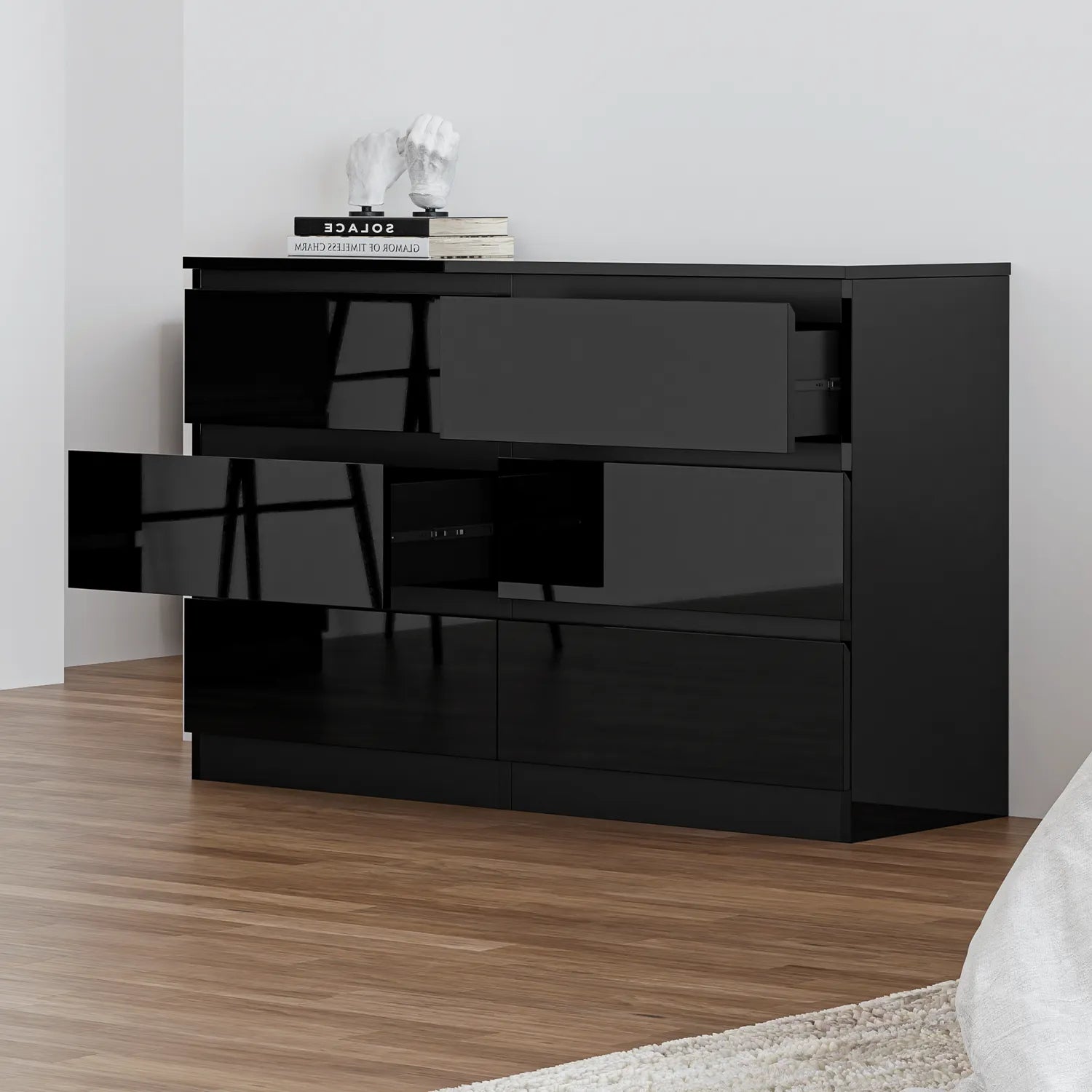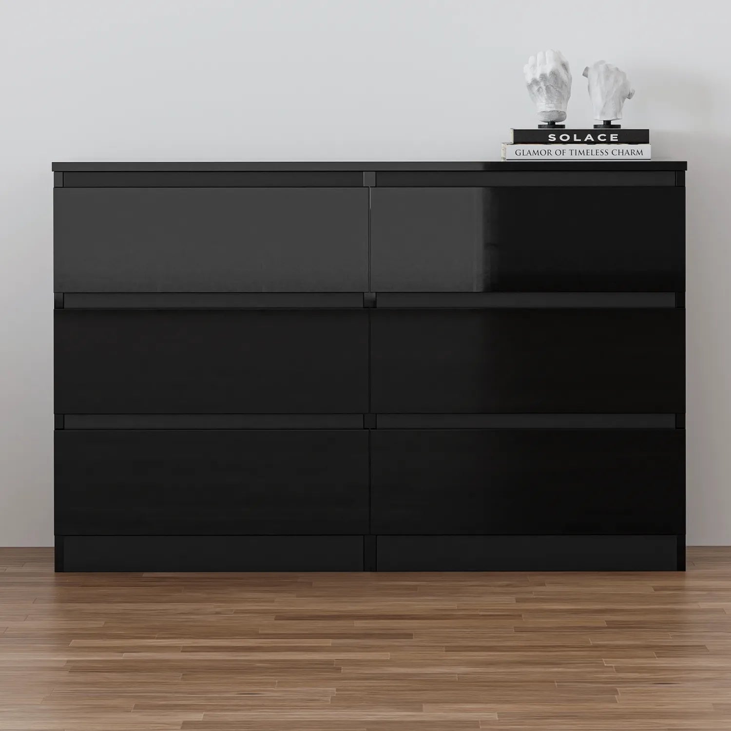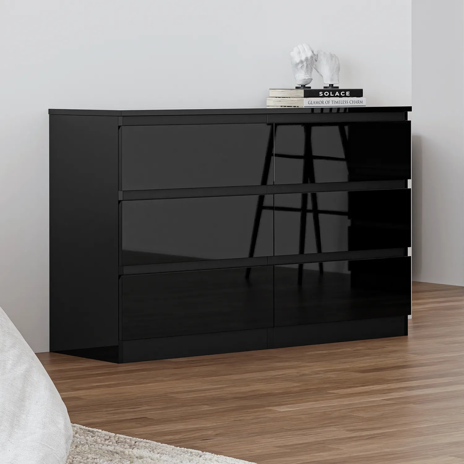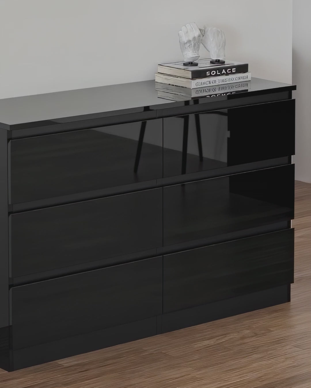 Combine sophistication and storage with the COMOD 6-drawer dresser. Its glossy black finish reflects light to brighten your space, while the spacious drawers ensure optimal organization. Perfect for a modern and minimalist interior.