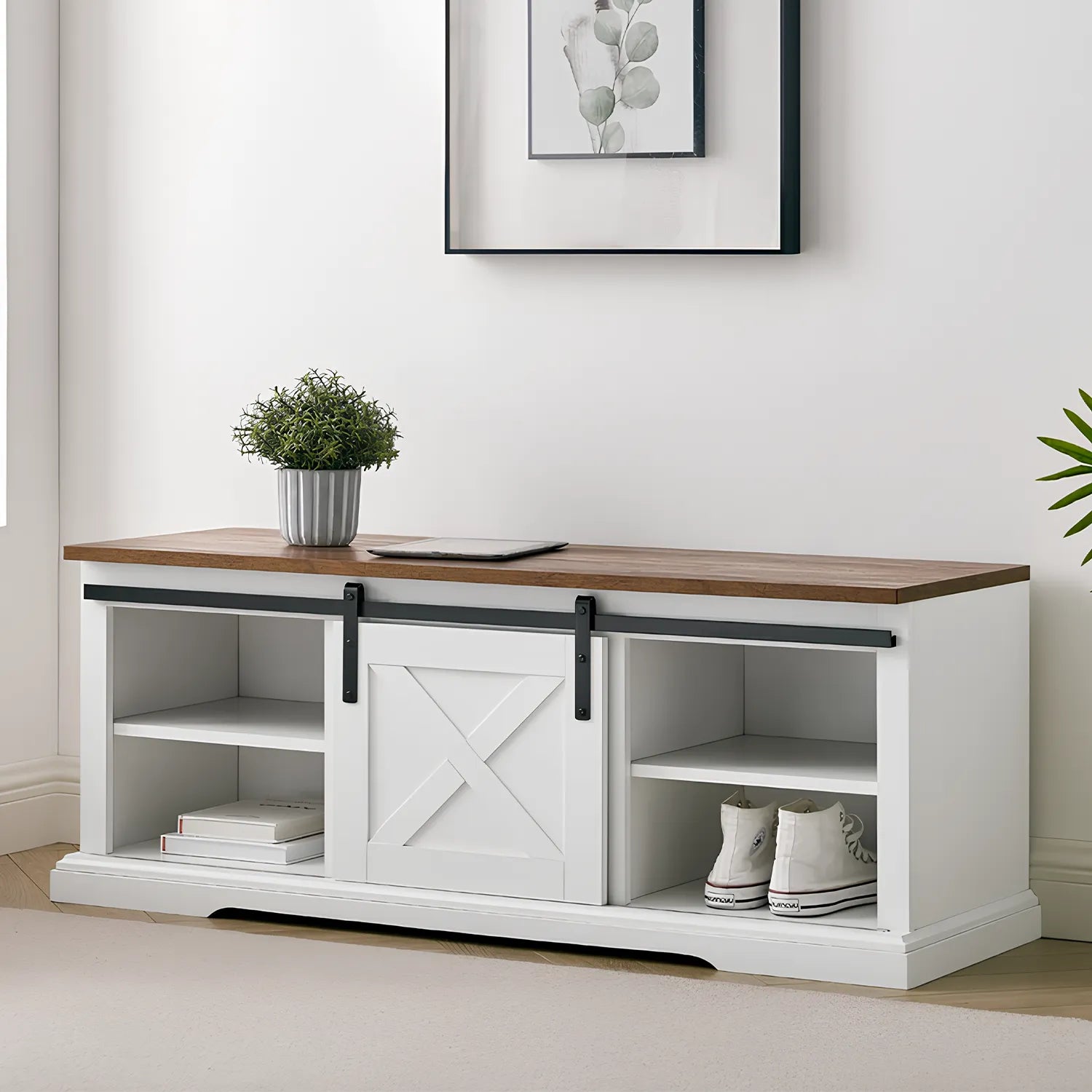 Hallway Bench - Golden Walnut and White