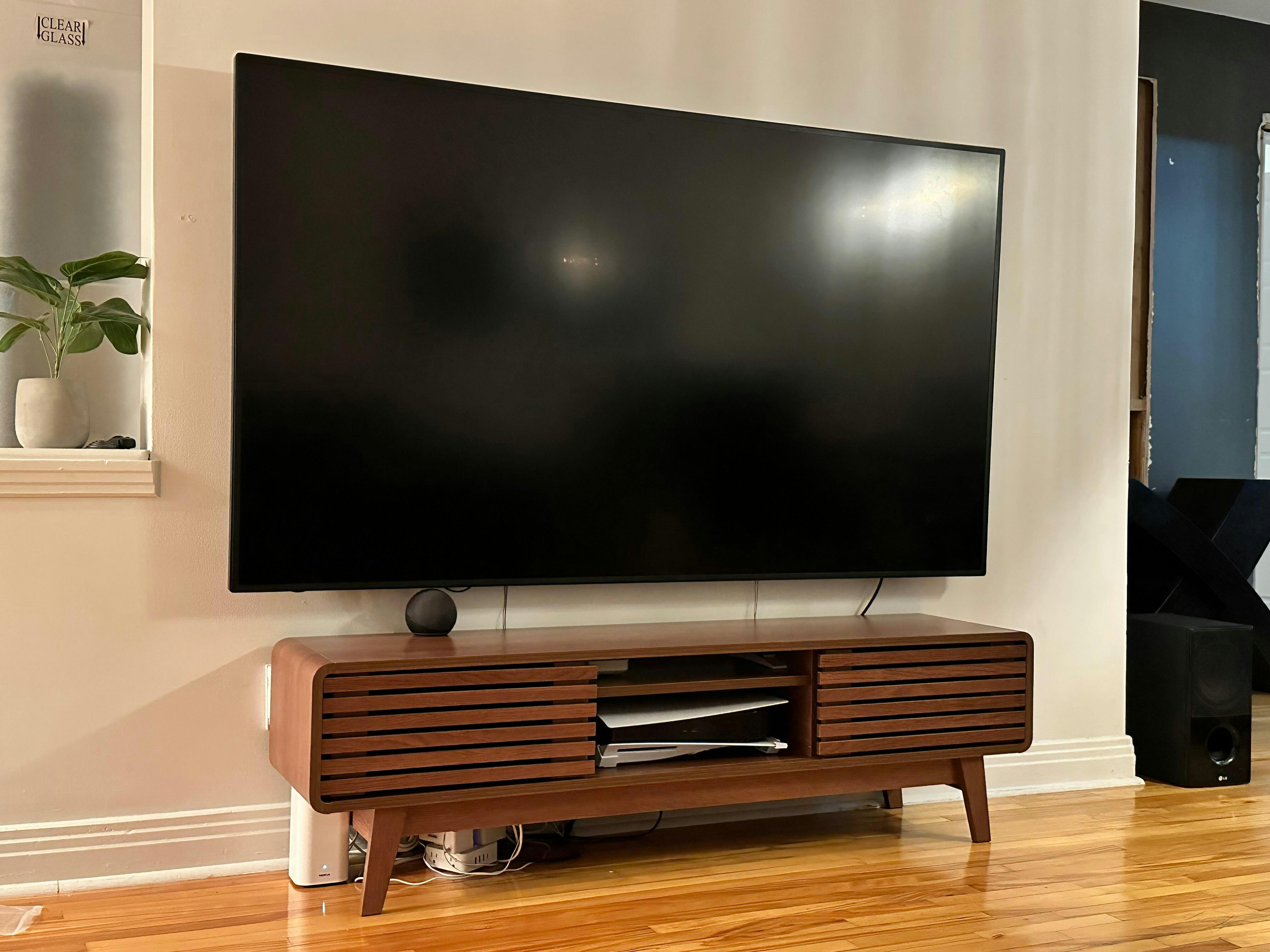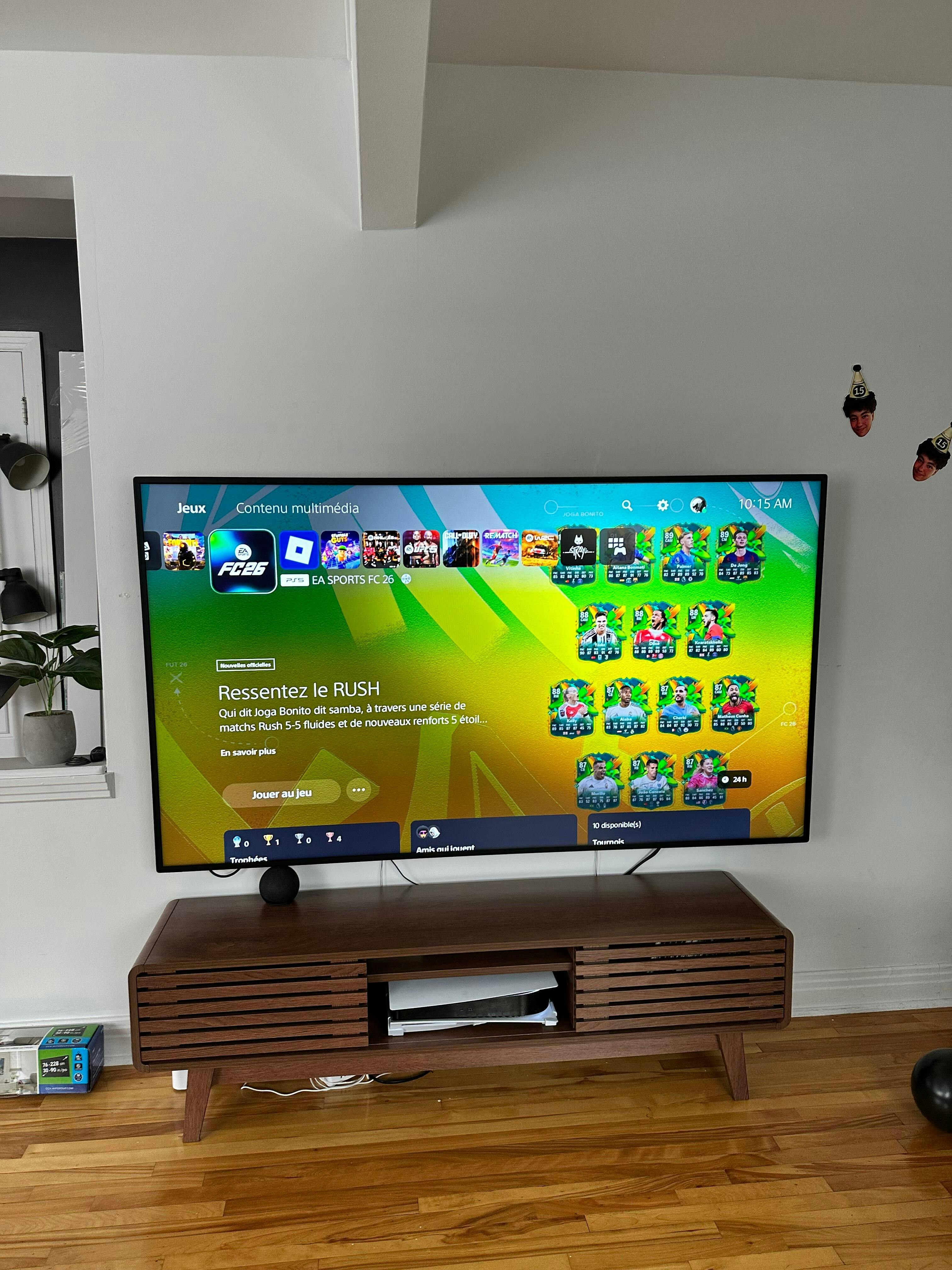 Add a touch of modernity to your home with the KOVA TV stand. Designed with an elegant golden walnut finish, this stand combines style and functionality. Its clean lines and slatted panels give it a contemporary design that blends harmoniously with any type of decor.