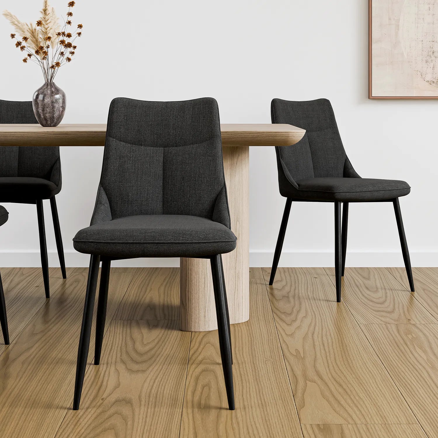 Apporte une touche chic à ta salle à manger avec la chaise LĪV. Son design moderne et son tissu foncé ajoutent du style sans compromis sur le confort. Parfaite pour les soupers en famille ou entre amis, elle s’agence à tous les décors.