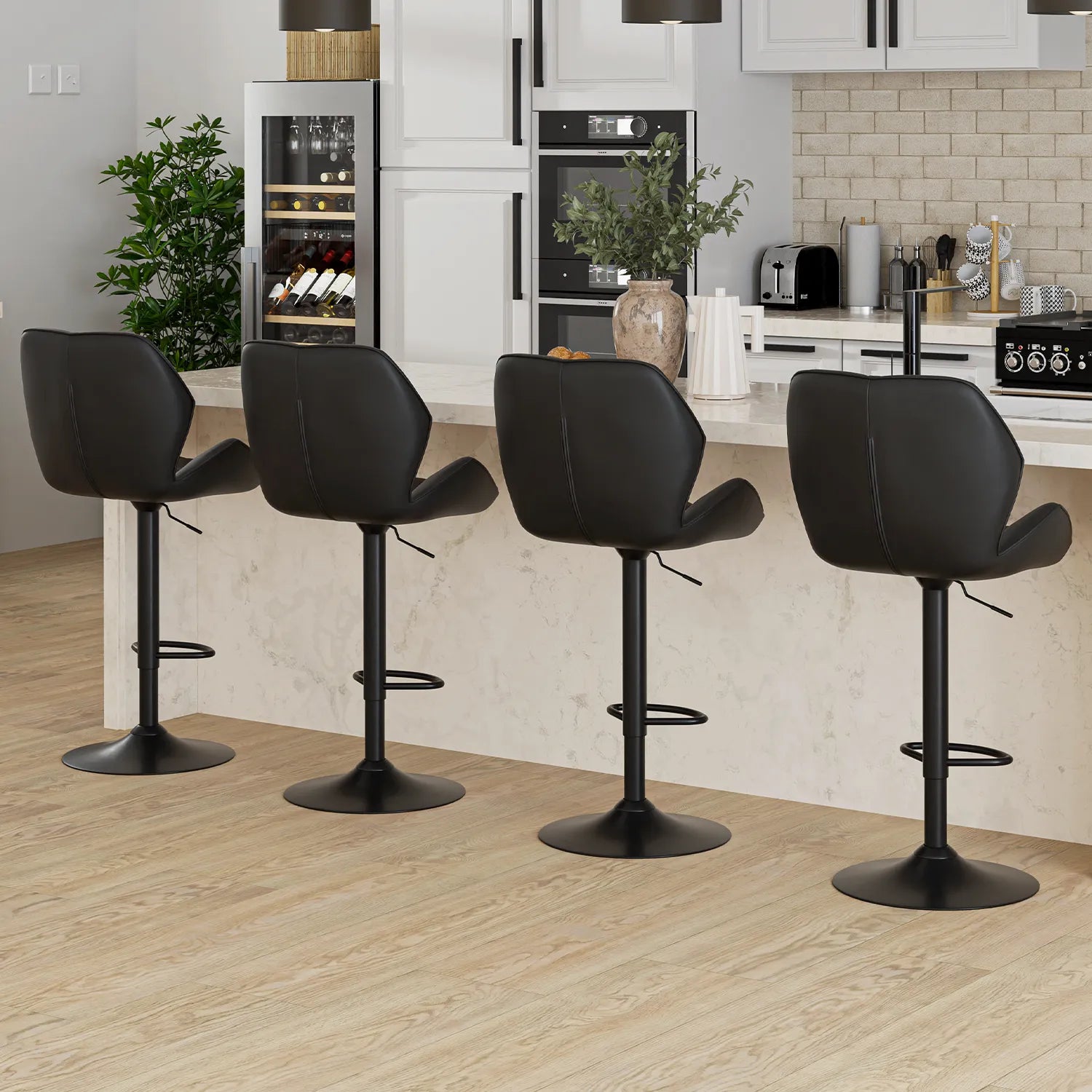 Add a modern touch to your kitchen with the LŌFT kitchen stool, adjustable and in faux leather. Offering comfortable seating thanks to its ergonomic design, it combines elegance and practicality. Available in black and white, this stool is designed to fit perfectly into your counter or home bar.
