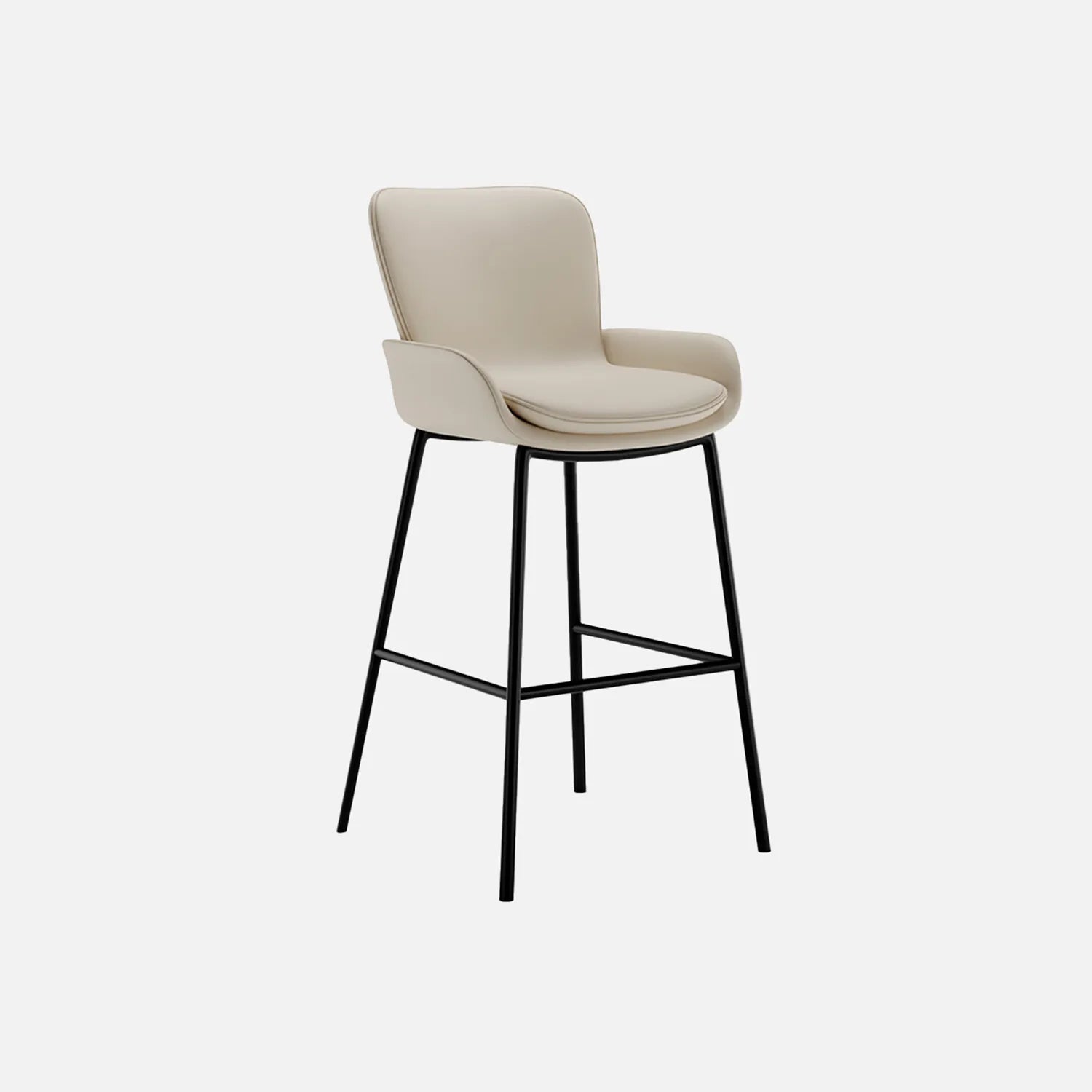 The MĪLO kitchen stool combines style and comfort with its modern design and sleek cream finish. Its padded seat and ergonomic backrest provide optimal support, while its solid metal frame ensures durability. Perfect for a contemporary island or bar.
