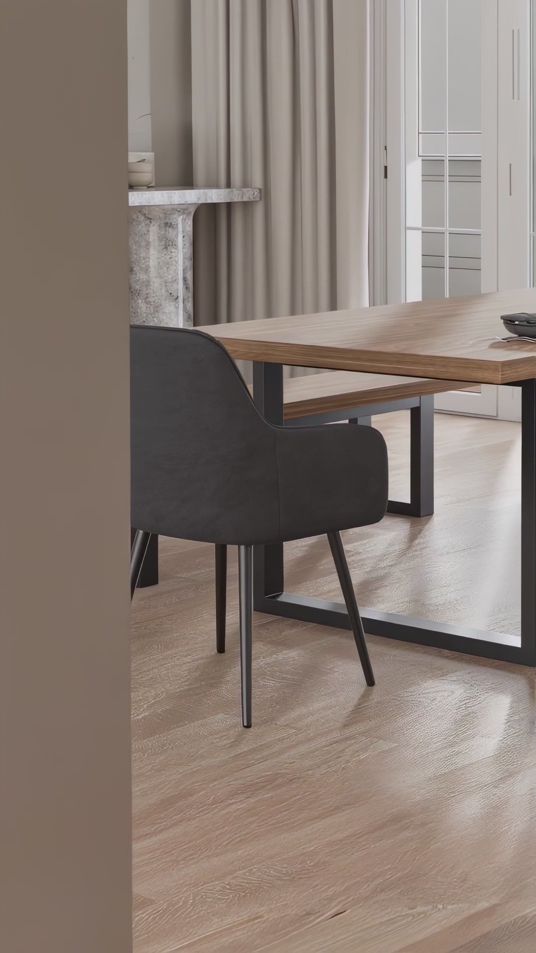 Apportez une touche chaleureuse à votre salle à manger avec l’ensemble NŌRDIK. Mariant à la perfection le bois naturel et l’acier noir, cette table spacieuse offrent un style industriel raffiné qui s’intègre à tous les décors. Conçue pour les moments de partage, elle est accompagnée de chaises rembourrées au design chic et confortable. Idéale pour accueillir famille et amis.