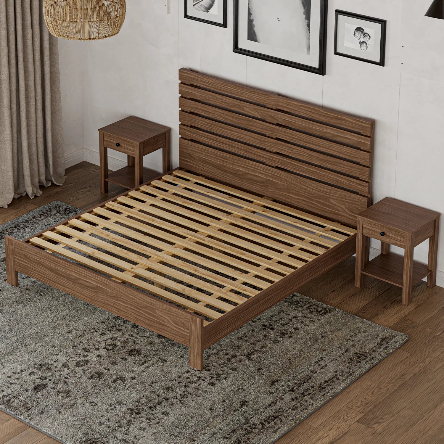 The NŌRDIK bed base combines Scandinavian style and durability. With its dark walnut finish, it offers a clean and timeless design, perfect for enhancing the ambiance of your bedroom. With its solid slats, it ensures optimal support for a restful sleep.