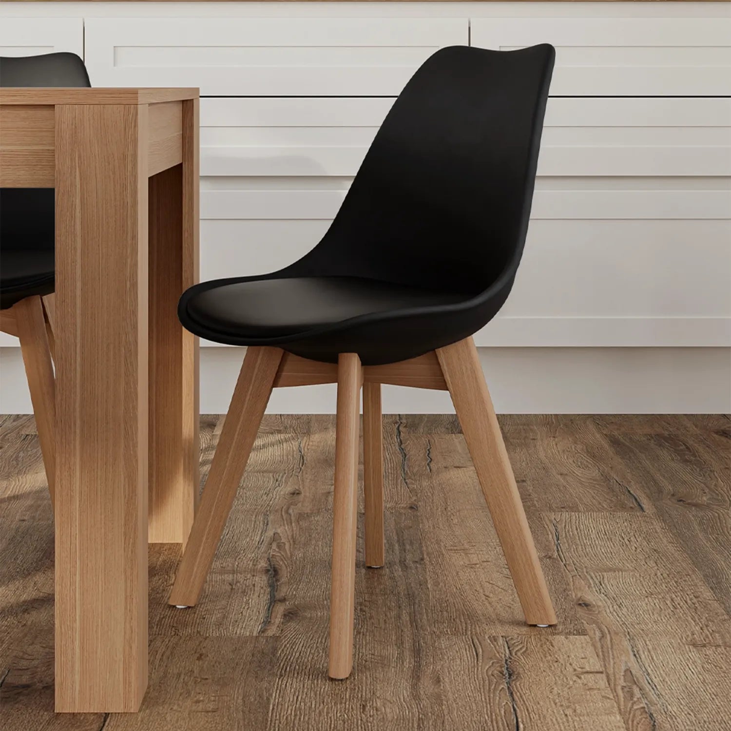Bring a touch of modernity to your dining room with the NŌVA chair. Its minimalist black design and natural wood legs blend seamlessly with any style. Comfortable and elegant, it's perfect for casual gatherings or moments of relaxation.