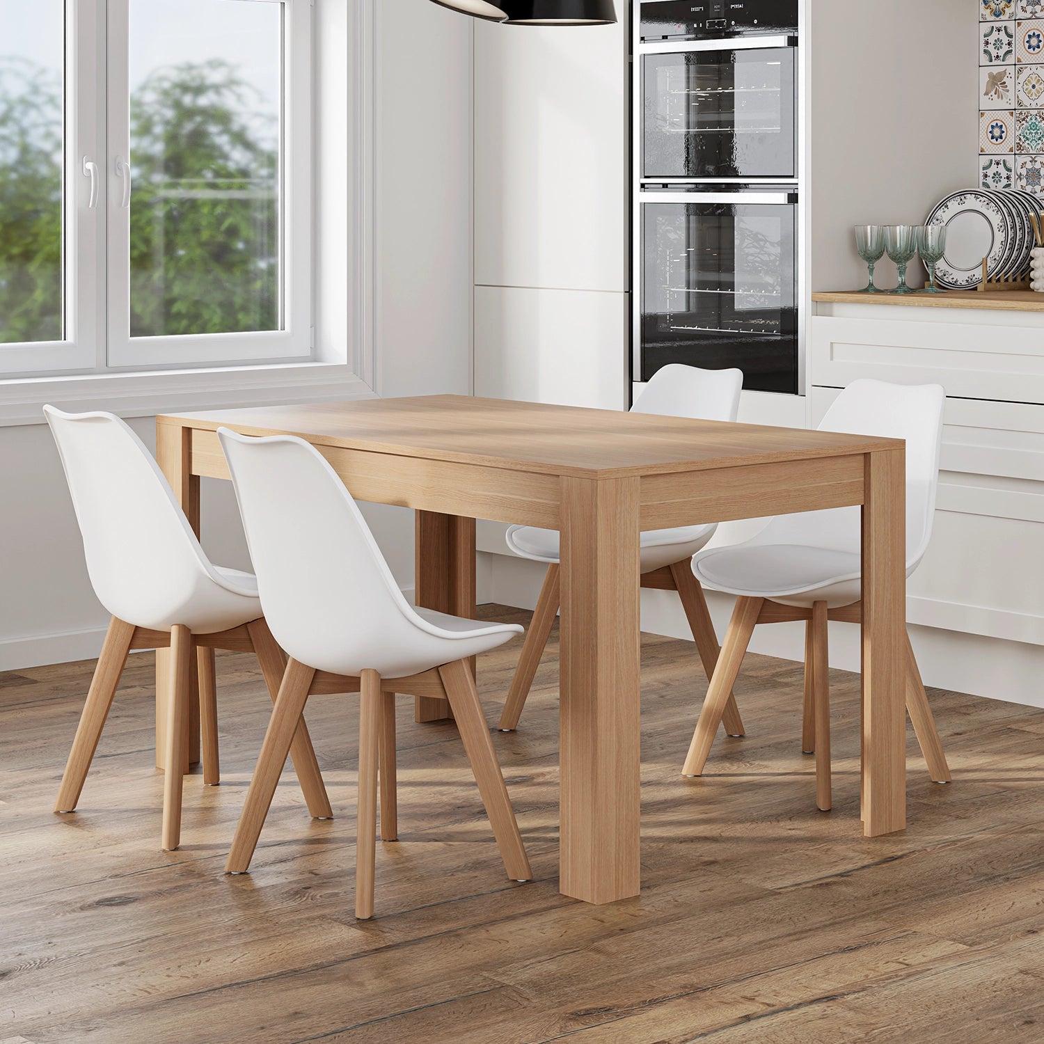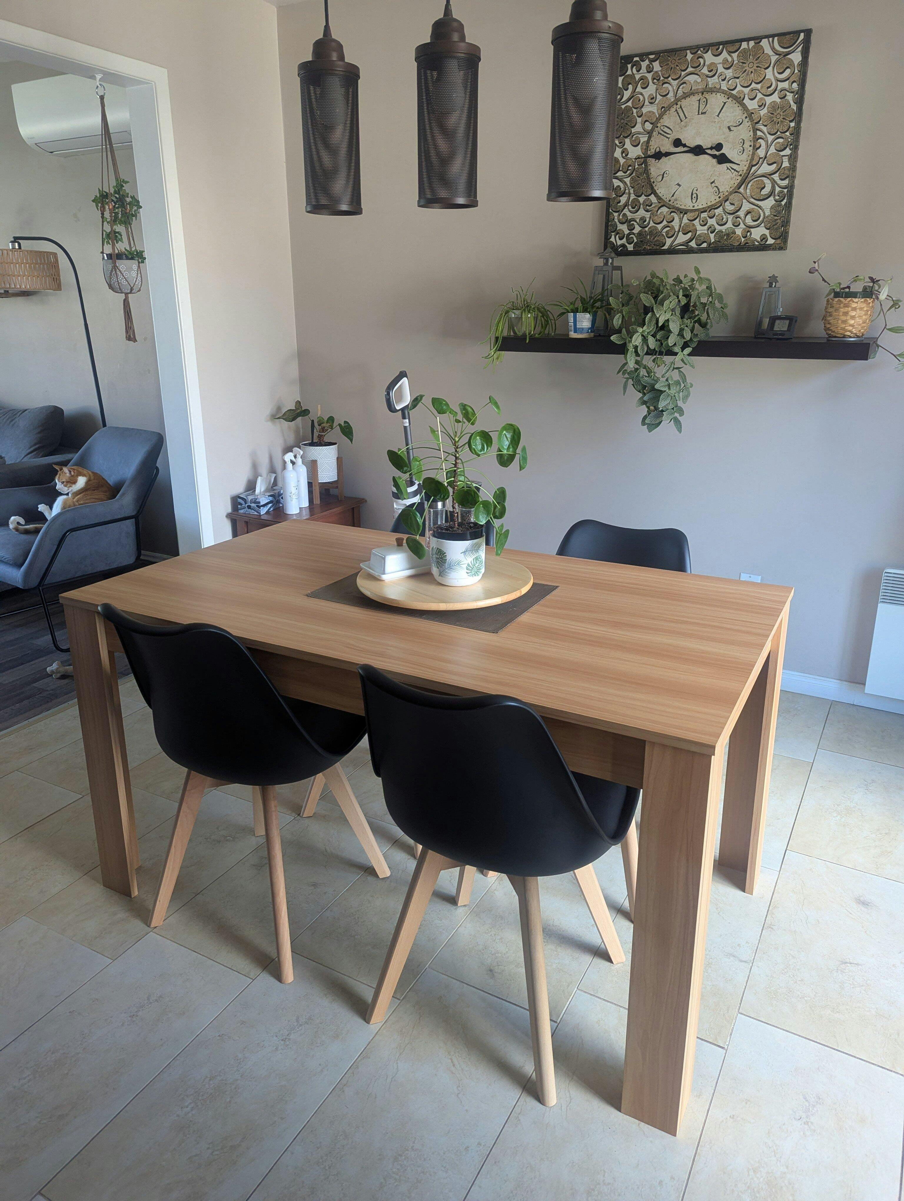 Offrez à votre salle à manger une touche de fraîcheur et de modernité avec l’ensemble NŌVA. Son design épuré au fini bois naturel et blanc s’intègre parfaitement dans tous les intérieurs, du scandinave au contemporain. Solide, fonctionnel et convivial, il est idéal pour partager de bons moments en famille ou entre amis.
