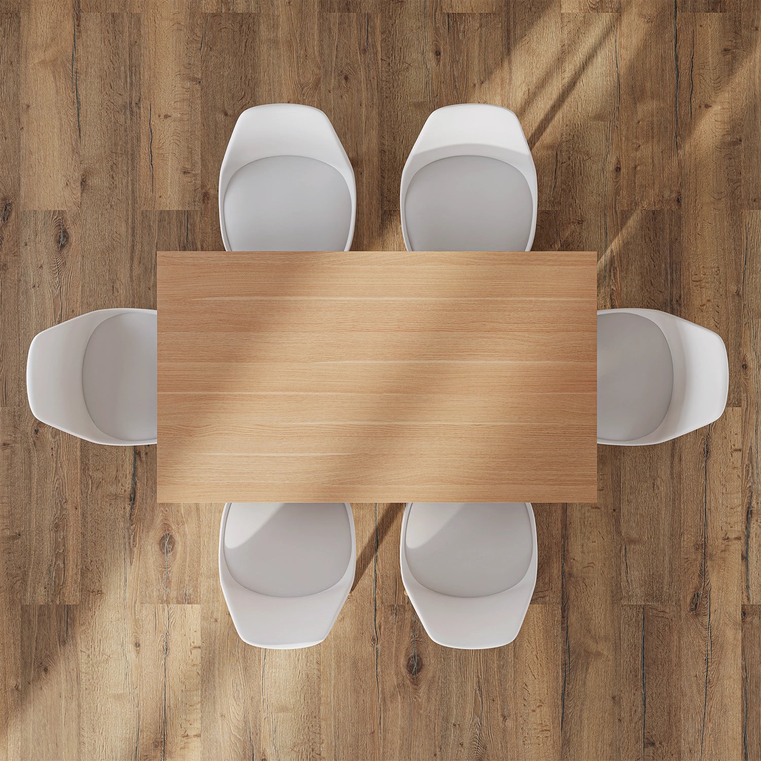 Offrez à votre salle à manger une touche de fraîcheur et de modernité avec l’ensemble NŌVA. Son design épuré au fini bois naturel et blanc s’intègre parfaitement dans tous les intérieurs, du scandinave au contemporain. Solide, fonctionnel et convivial, il est idéal pour partager de bons moments en famille ou entre amis.