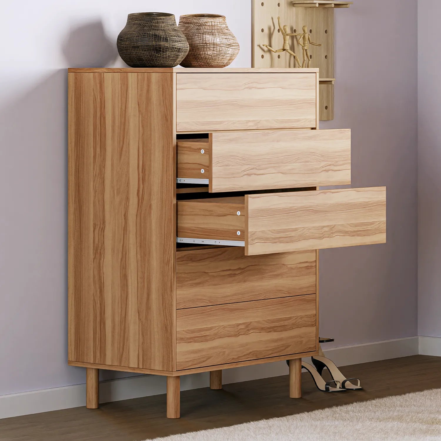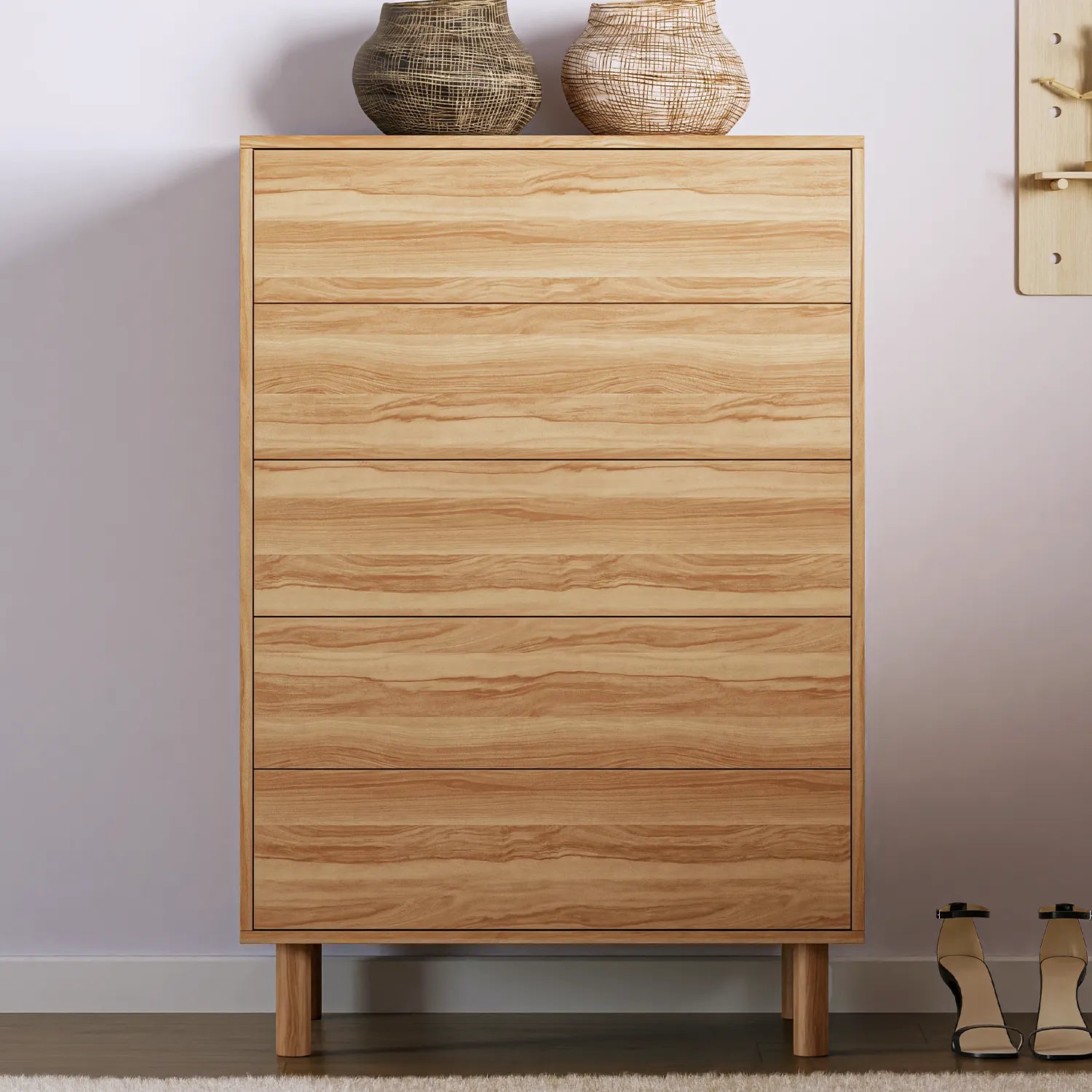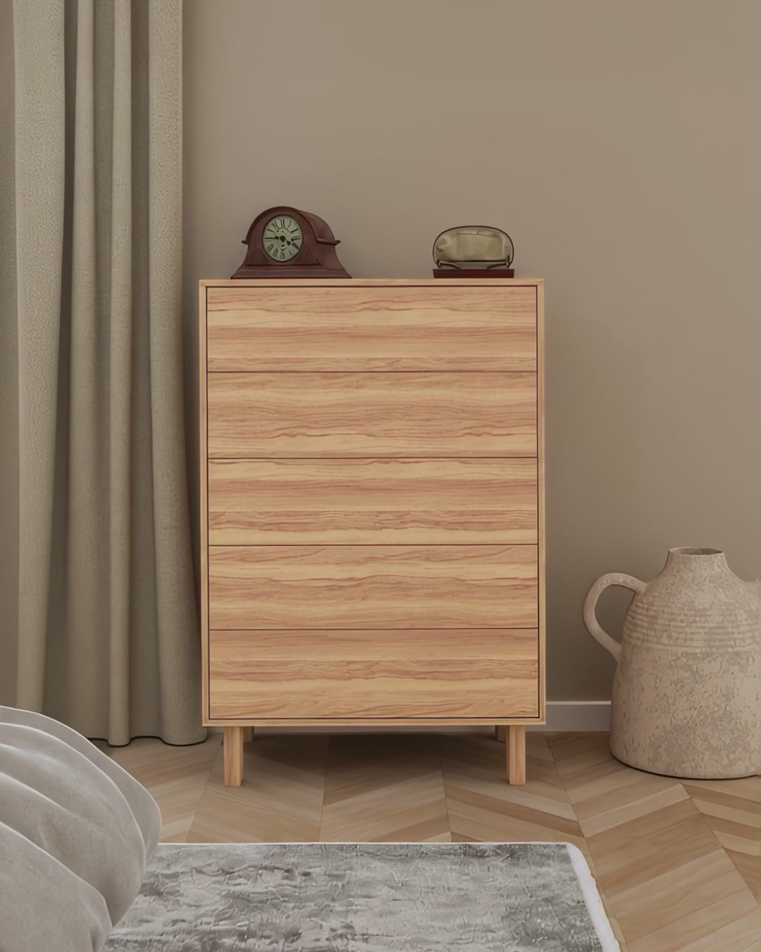 Simplify your storage with the PŪRE dresser. Its timeless design in natural wood color and its 5 spacious drawers make it a piece of furniture that is both practical and elegant. Ideal for maximizing space, while adding a warm and minimalist touch to your interior.