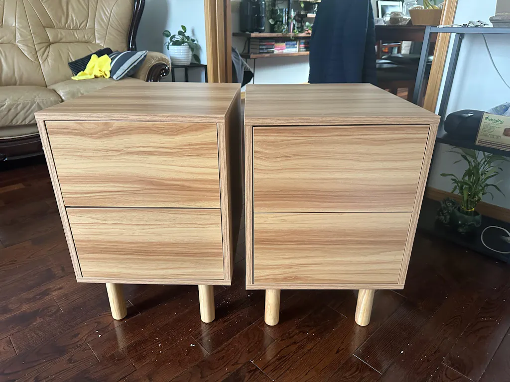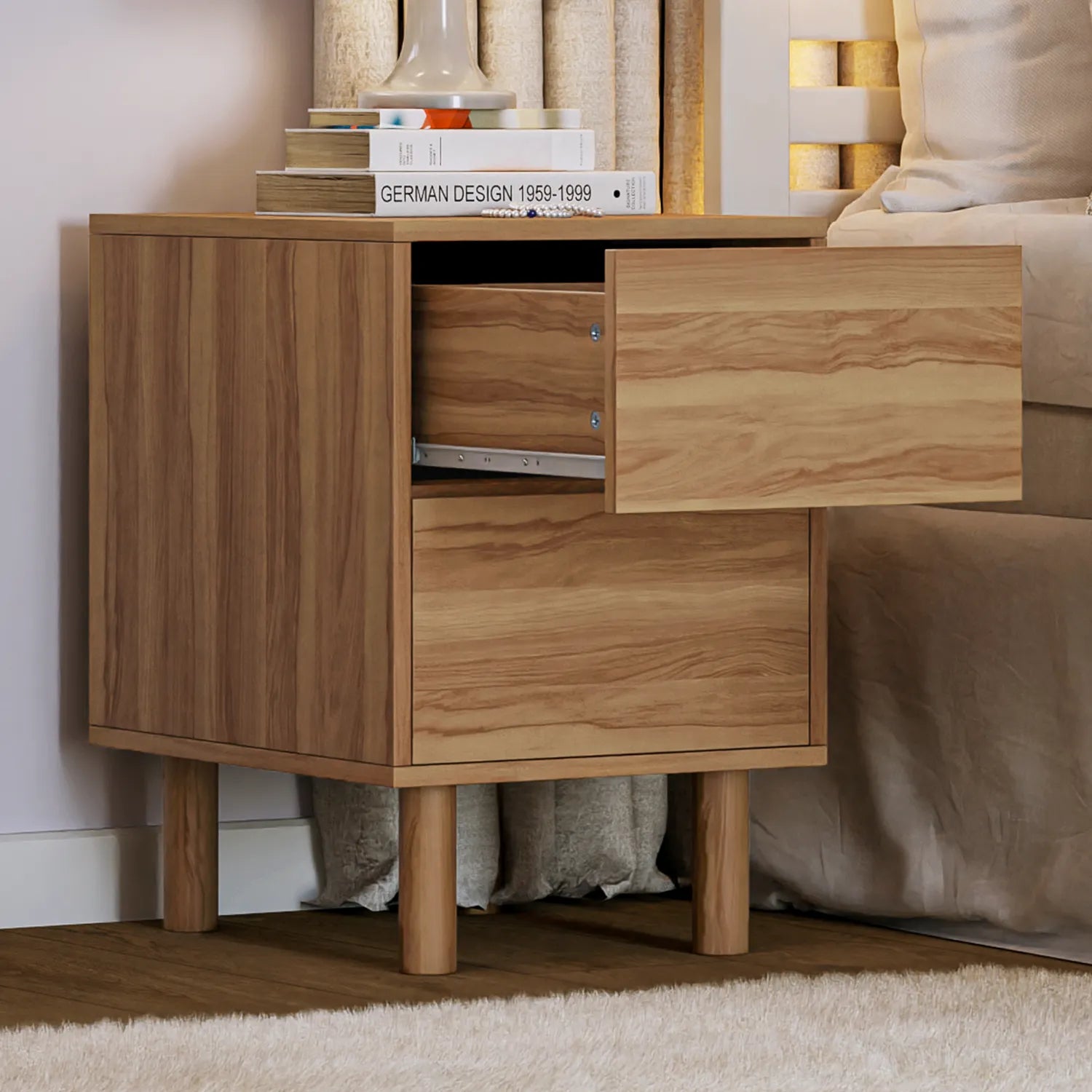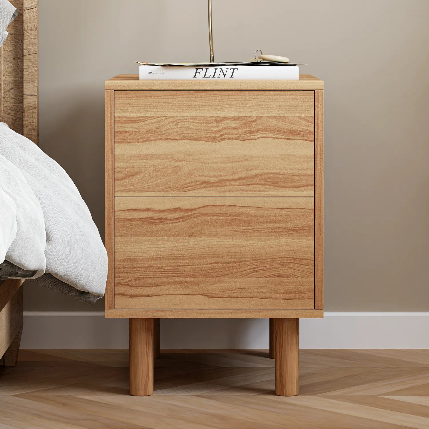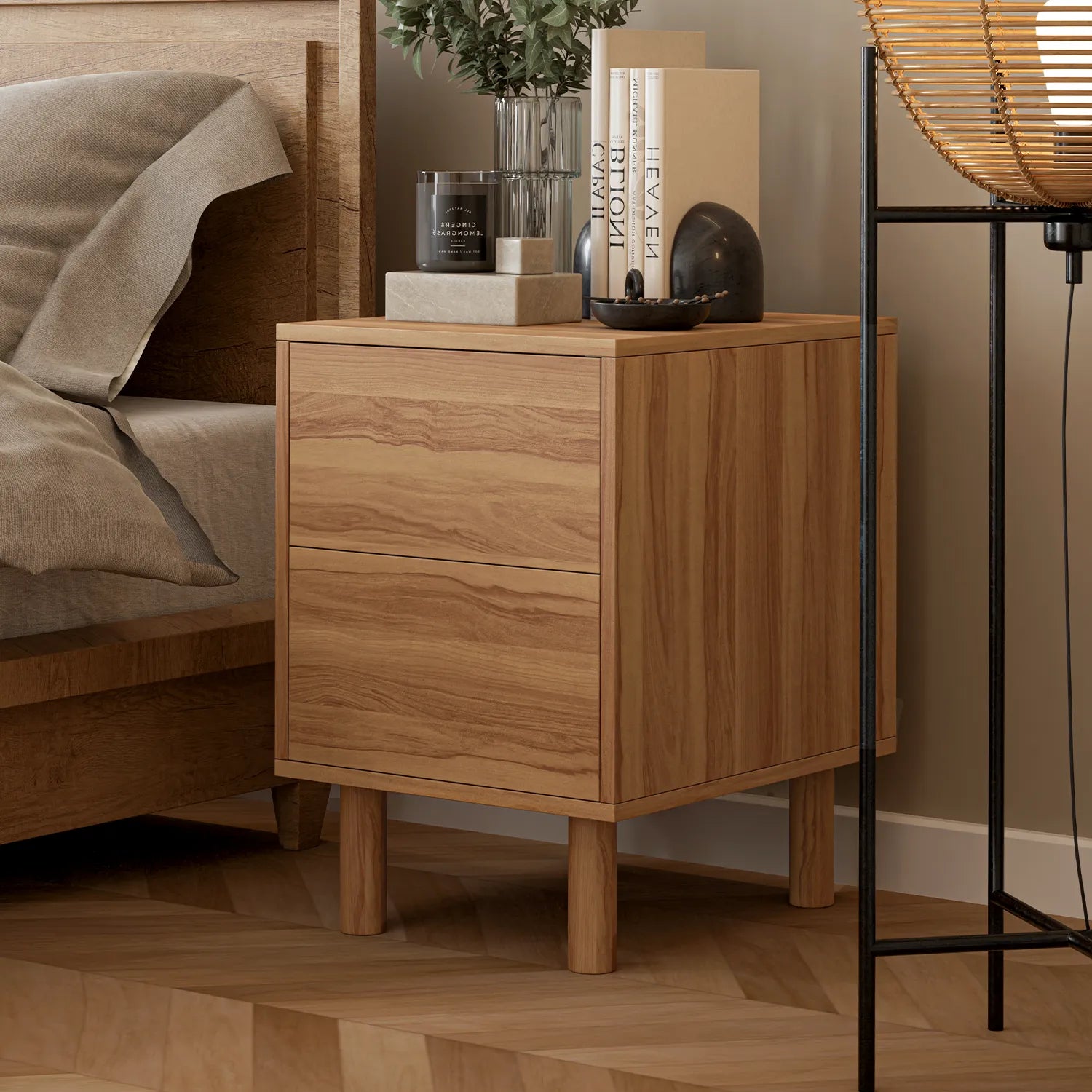 Bring a warm and minimalist touch to your bedroom with the PŪRE nightstand. Made of natural wood-style melamine, it offers two spacious drawers for discreet storage. Its sleek design and soft lines blend perfectly with all styles of decoration.