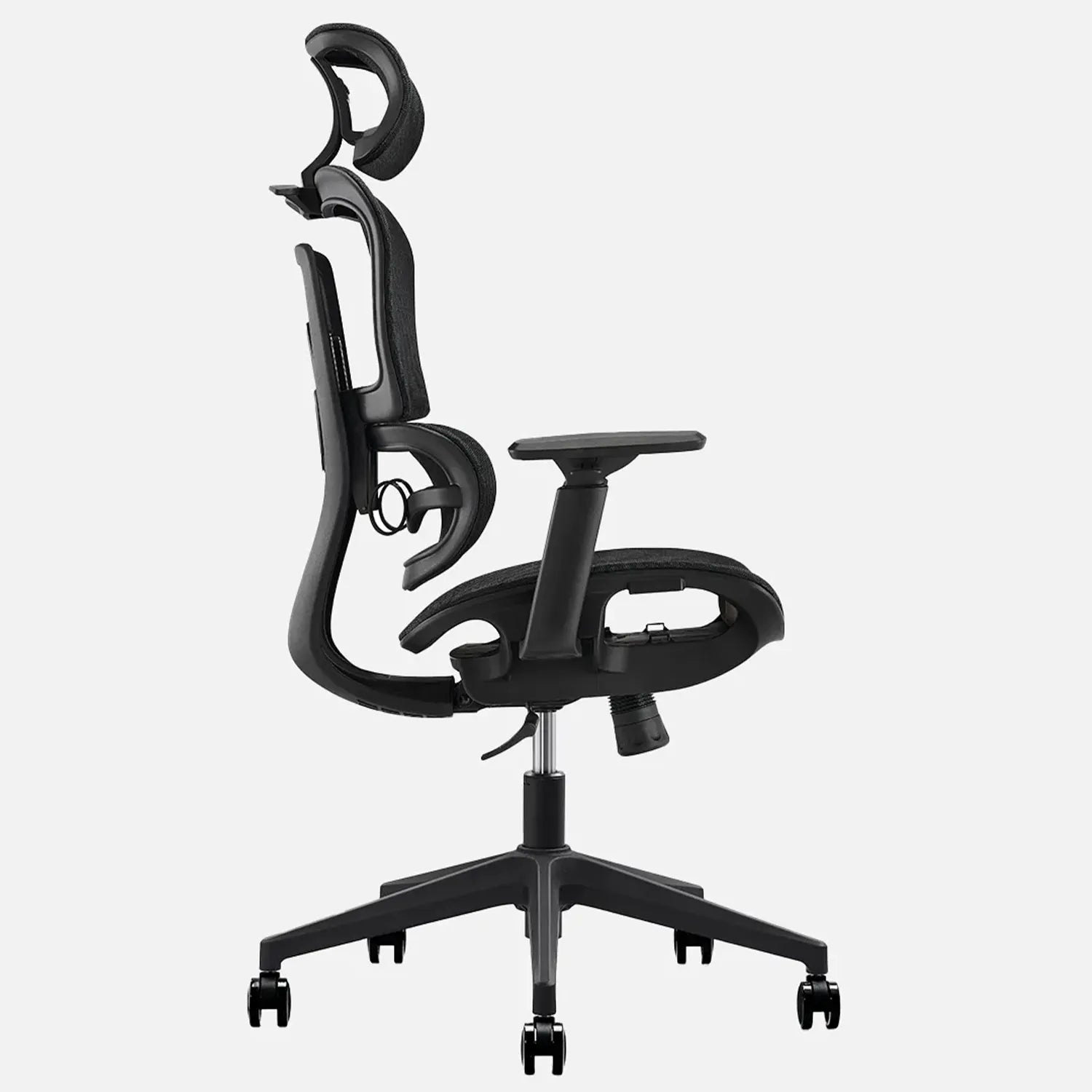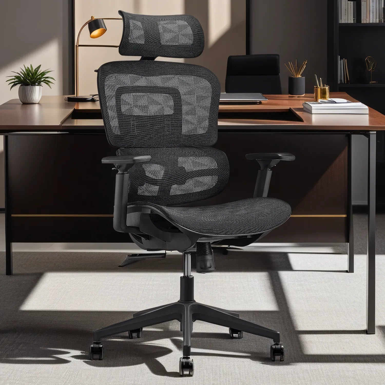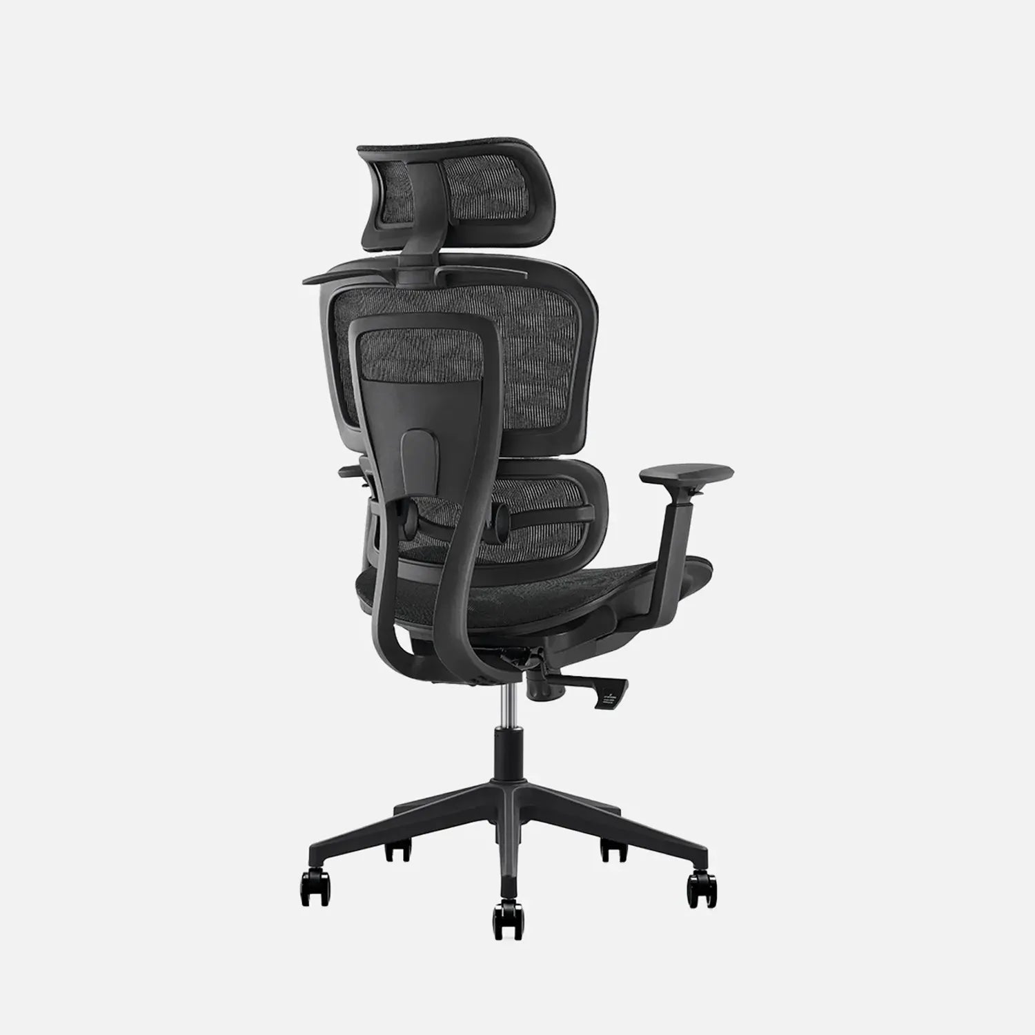Adjustable headrest, Adjustable armrests, 360° swivel casters